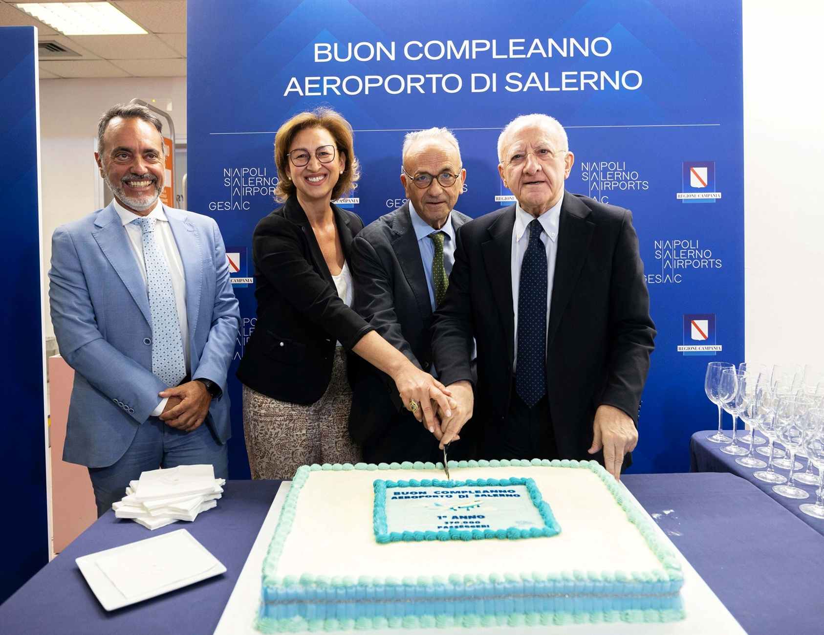 Today, July 11, 2025, we celebrated the first year of activity of the airport, with the participation of the President of the Campania Region Vincenzo De Luca and the President of GESAC Carlo Borgomeo.