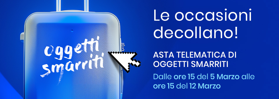 From 5 to 12 March, The auction of objects found at Naples Airport will take place through an electronic tender accessible at www.ivgnapoli.fallcoaste.it from 15:00 on 5 March to 15:00 on 12 March.
