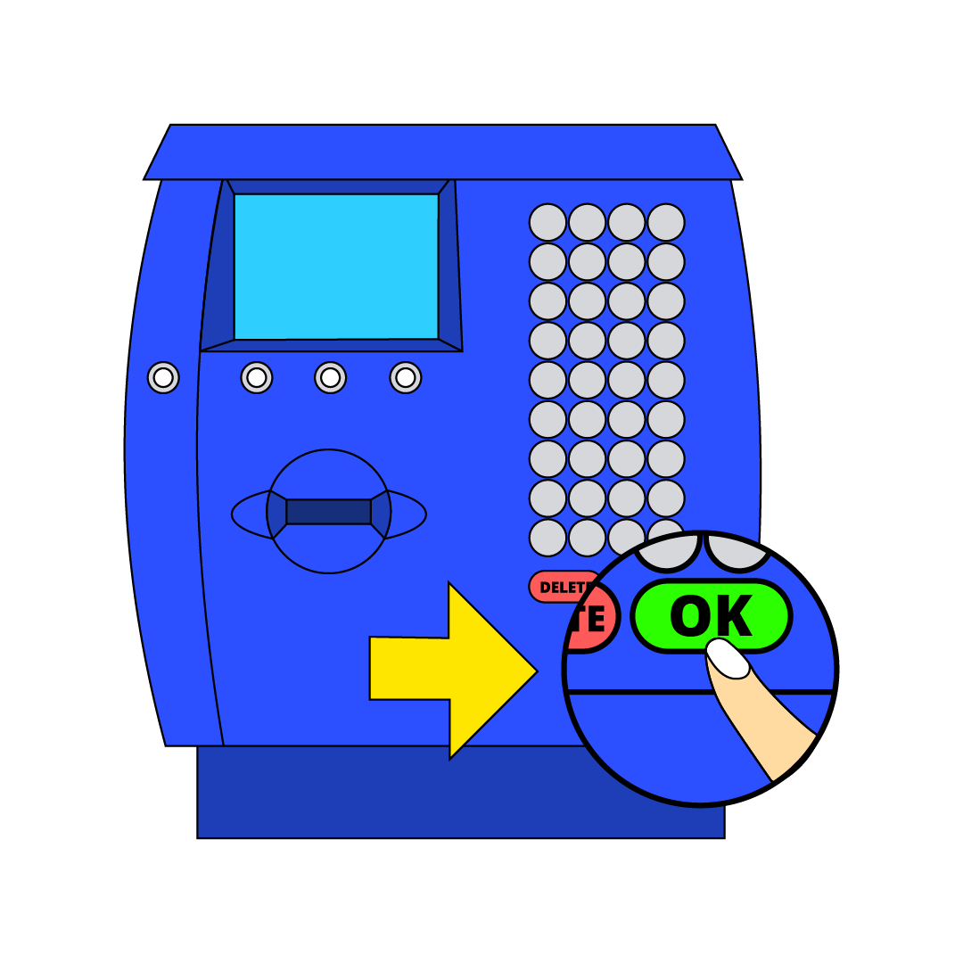 In entrata digita il PIN a 6 cifre sull'apposita tastiera e premi il tasto OK. Attendi l’emissione del biglietto e conservalo con cura, ti servirà per uscire dal parcheggio al termine della sosta.
