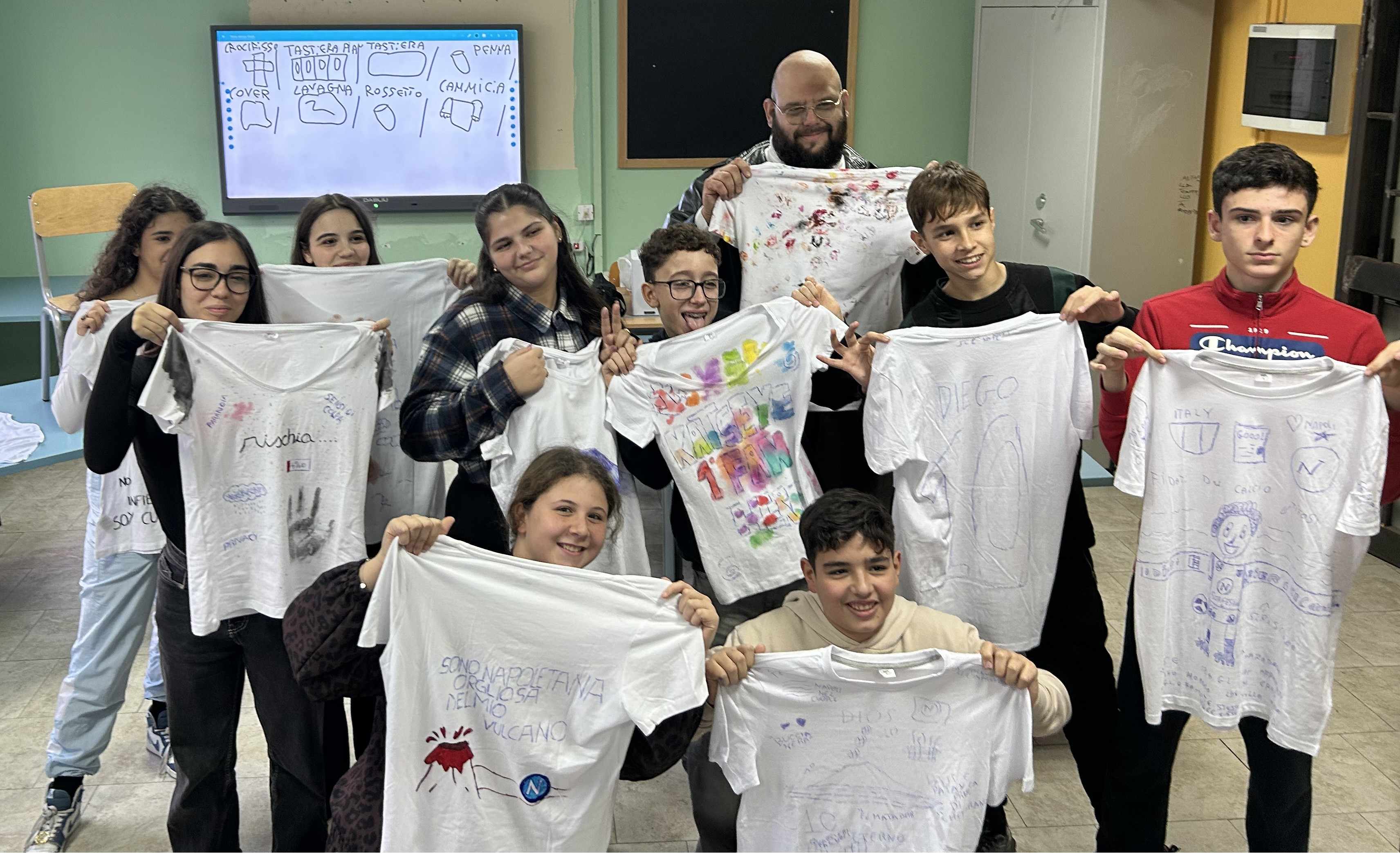 Un percorso creativo che ha visto gli studenti reinterpretare la città attraverso simboli, colori e forme, fino alla realizzazione di prototipi di magliette per il Calcio Napoli.